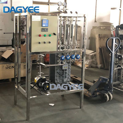 Процесс обратного осмоза использует semi проницаемые спиральные обветренные мембраны для того чтобы отделить и извлечь растворенные твердые тела, органический, pyrogens, дело субмикрона коллоидные и бактерии из воды. Питательная вода поставлена под давлением приблизительно 16 мембран осмоза throughreverse kg/cm2. Вода проникает мельчайшие поры мембраны и поставлена как очищенная вода. Примеси в воде сконцентрированы в потоке брака и потоплены для того чтобы стечь. Обратный осмоз способен на извлекать 90-99% из полных растворенных твердых тел (TDS), 99% органического, включая pyrogens, и 99% всех бактерий в питательной воде.