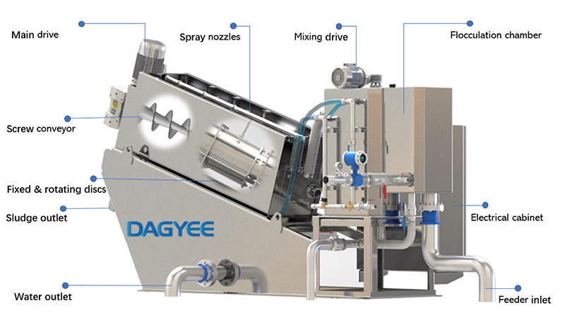 Автоматическая Dewatering штабелированная обработка сточных вод Multipal обезвоживателя шуги винта промышленная